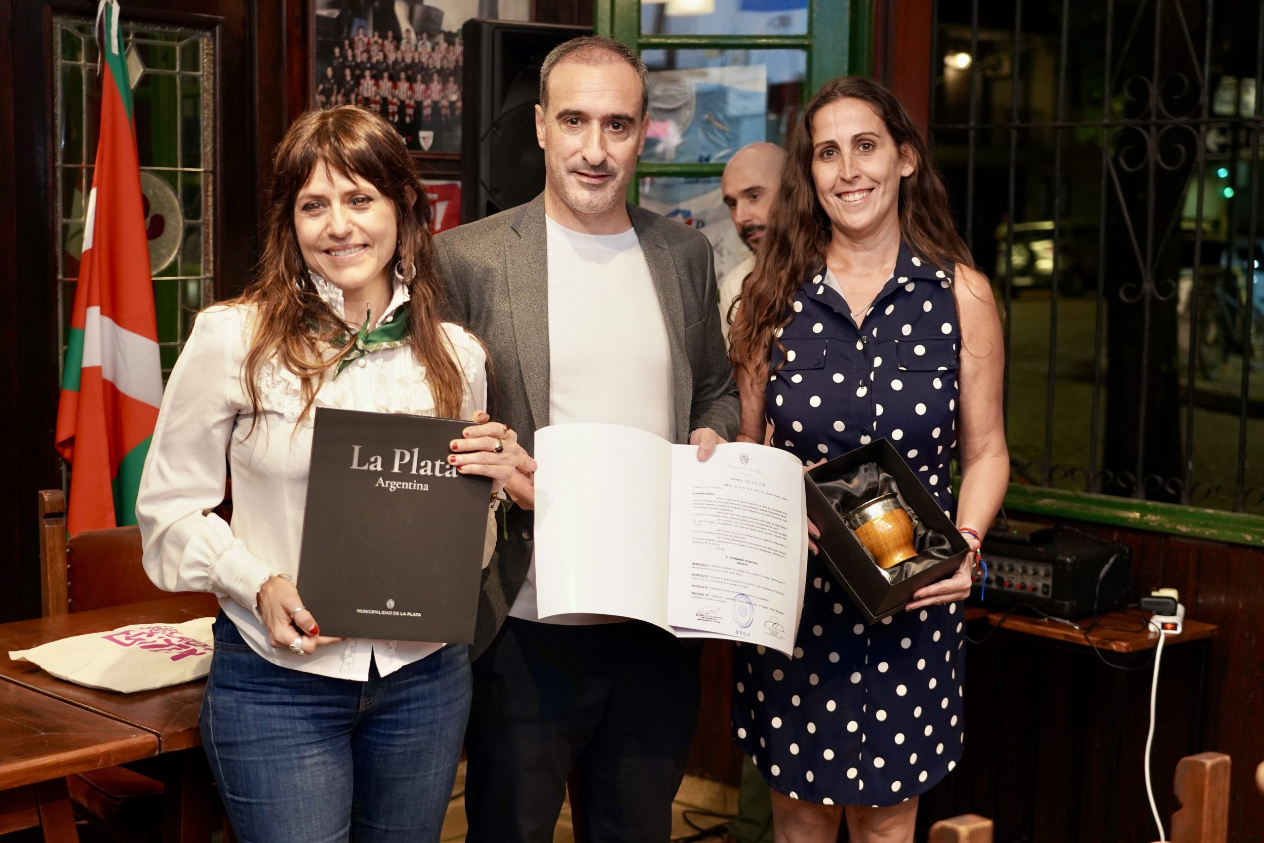 Participó de la entrega del reconocimiento a la actriz en el Centro Vasco Euzko Etxea La Plata el jefe de Gabinete de la Municipalidad, Carlos Bonicatto.