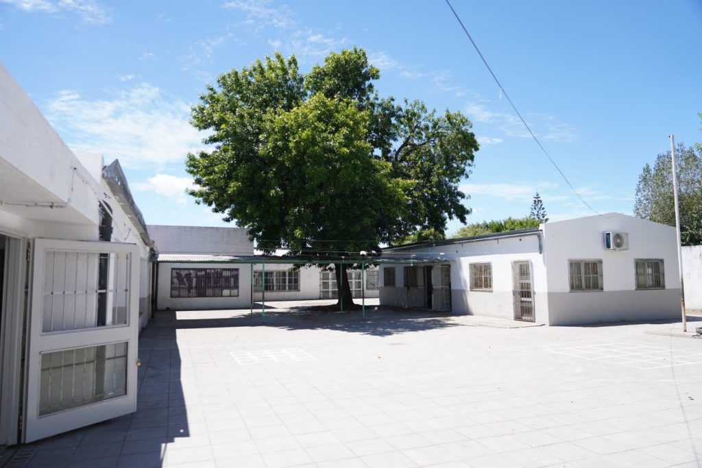 Con un avance de ejecución del 85%, en el edificio de las escuelas se concretó la impermeabilización y el sellado de filtraciones, la limpieza de desagües pluviales, la extensión de agua con bomba centrífuga y tanque cisterna, la reparación de rejillas de hormigón y cielorrasos, la construcción del contrapiso, el revoque de las paredes y la pintura integral de todos los espacios.