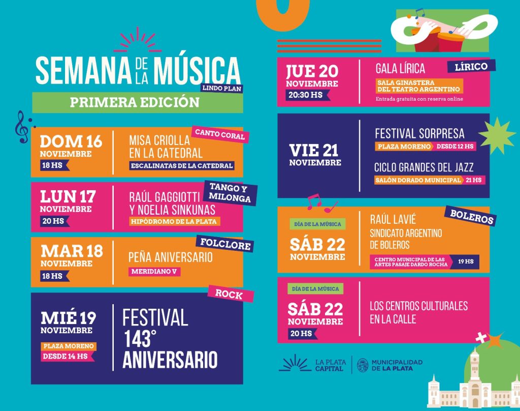 Con esta programación, la ciudad se prepara para una semana en la que la música ocupará el espacio público y acercará una amplia diversidad de géneros y estilos a todos los platenses.