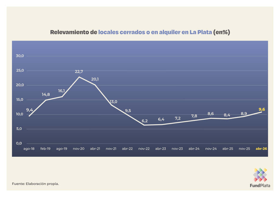 Según los datos relevados durante el mes de abril de 2026 por la Fundación FundPlata, la capital bonaerense registra un total de 455 locales cerrados definitivamente o en alquiler. Esta cifra representa el 9,6% de un universo de 4.739 comercios analizados, marcando un retroceso significativo respecto a los niveles de ocupación de años anteriores y consolidando una tendencia de desocupación que parece no encontrar su techo.