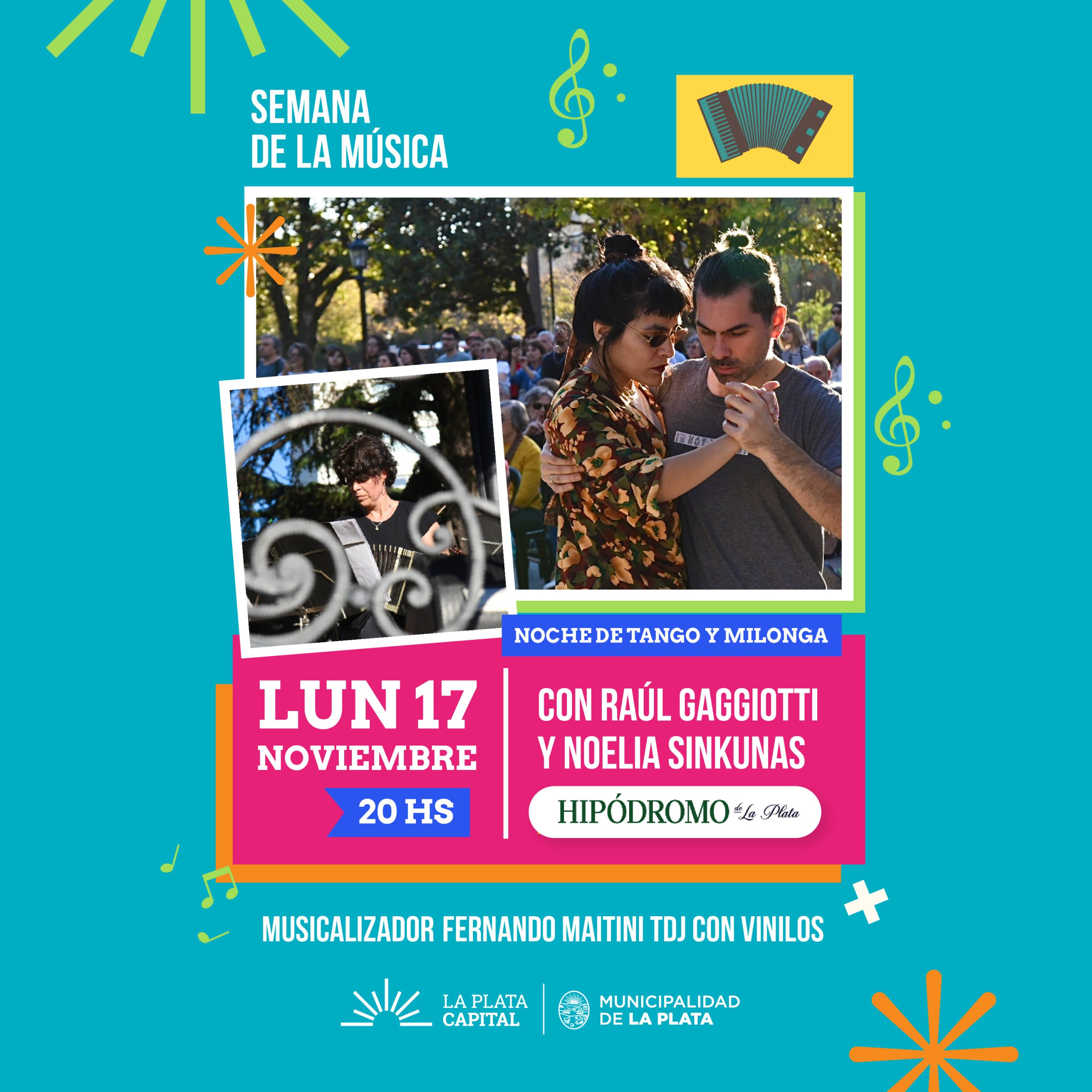 En el marco de la Semana de la Música, que comenzó con éxito el último fin de semana en la ciudad, la Municipalidad llevará adelante este lunes una noche de tango a partir de las 20:00 en el Hipódromo de La Plata junto a la Lotería de la Provincia.