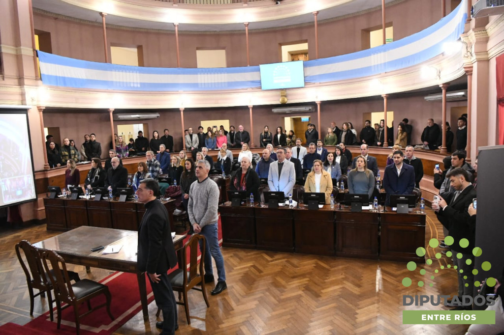 Al inicio de la sesión, con motivo de la celebración del Día de la Independencia el próximo 9 de julio, se entonaron las estrofas del Himno Nacional.